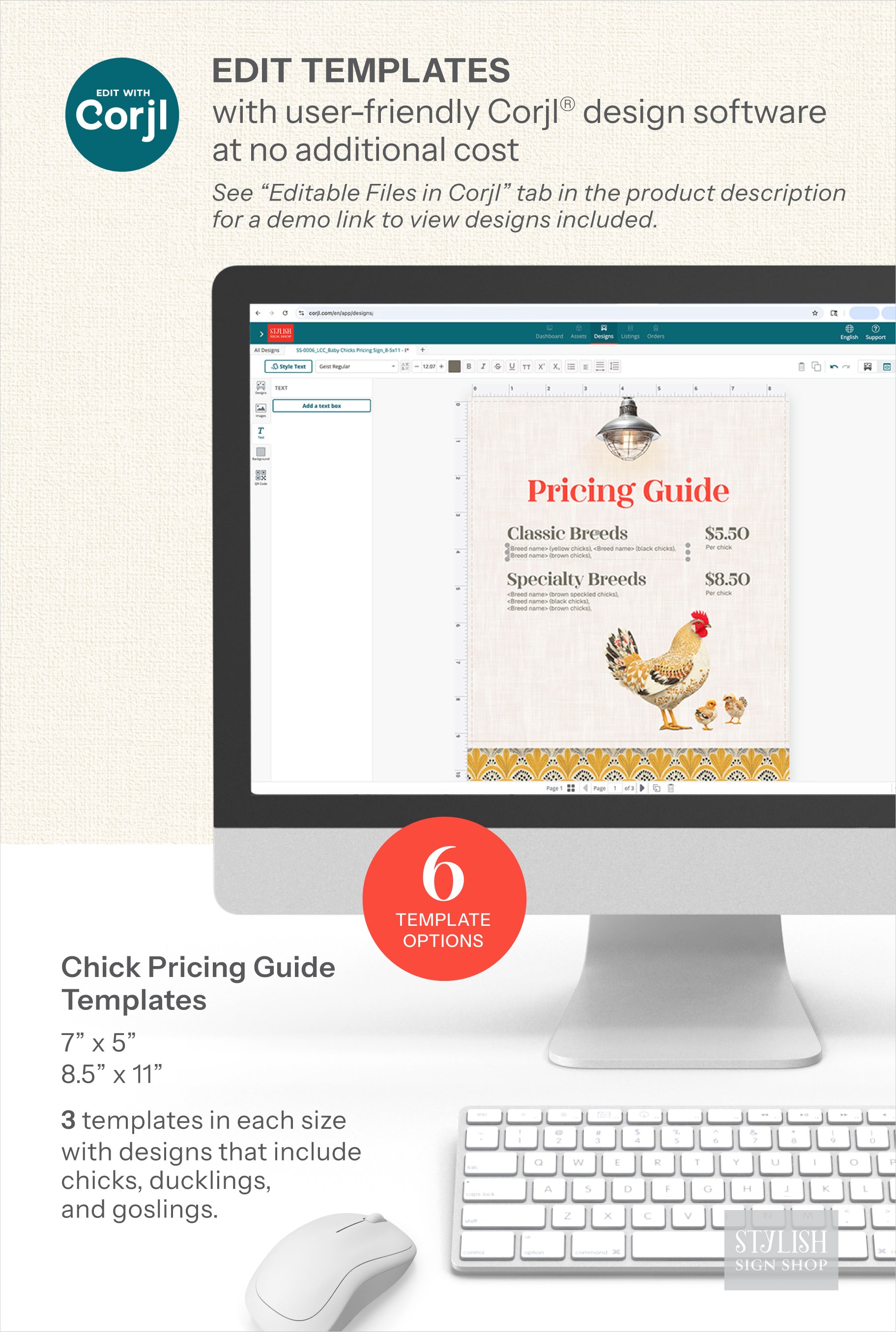 We’ve made editing your templates simple and convenient by partnering with Corjl, a user‑friendly online design app. With Corjl, you can customize the templates you purchased directly in your browser—no need for expensive or complicated design software. Best of all, it’s included at no extra cost.